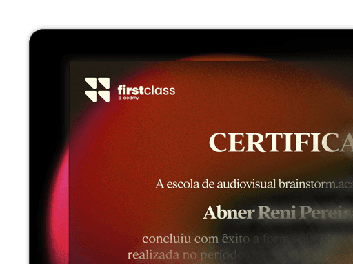 A First Class é para quem entende que técnica sem estratégia é apenas um hobby caro. Com a formação, você se tornará um profissional completo, capaz de encarar qualquer projeto com segurança e confiança no próprio trabalho, de entender e otimizar processos e de conquistar a estabilidade financeira trabalhando com audiovisual.